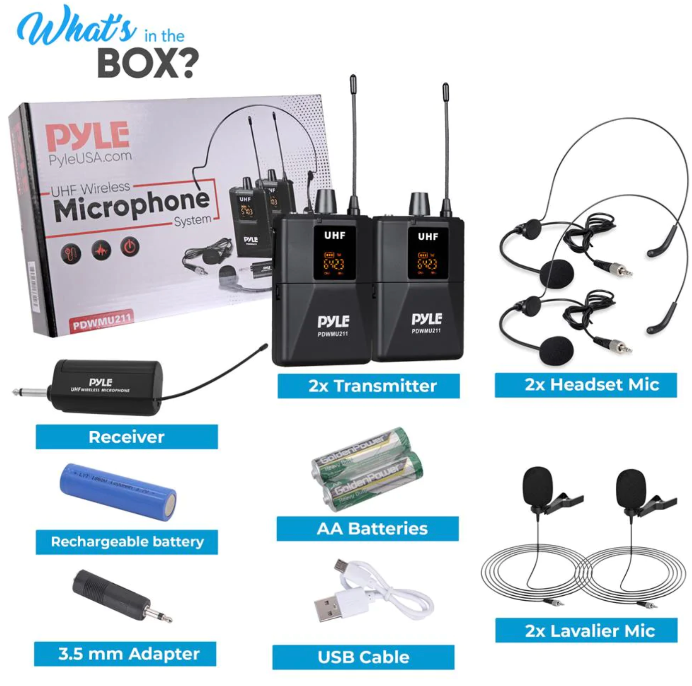 Dual Headset Wireless Microphone Kit - Includes Headset Mic, Lavalier Mic & Beltpack Transmitter